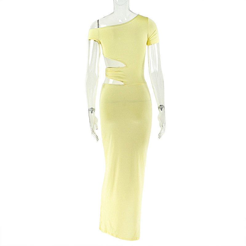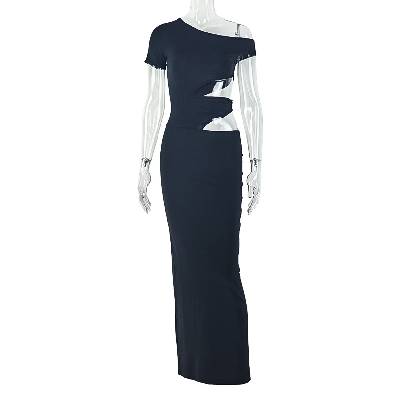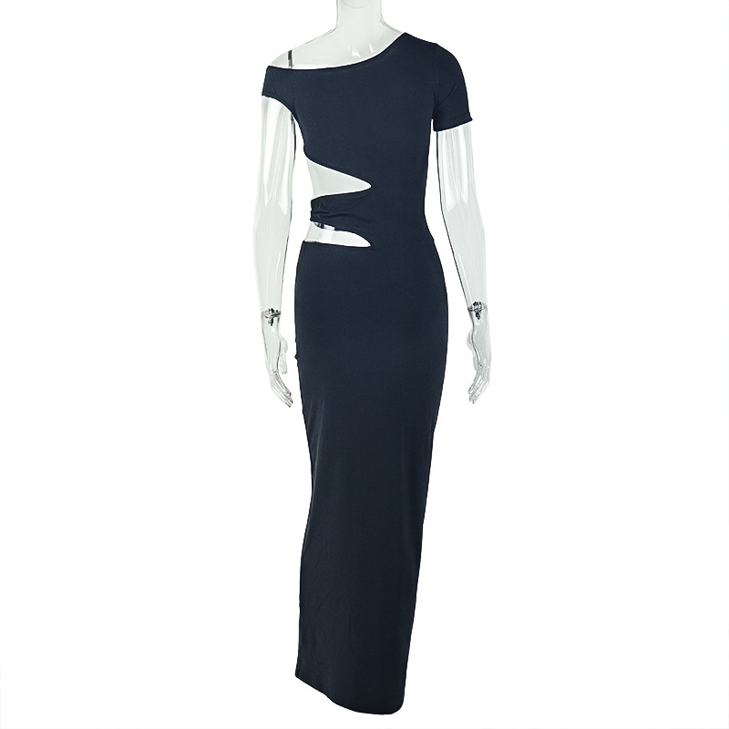 Solid Color Elegant Women Sheath Slim Fit One Step Dress Hollow Out Cutout Asymmetric Dress Evening Party Dress