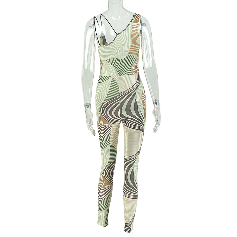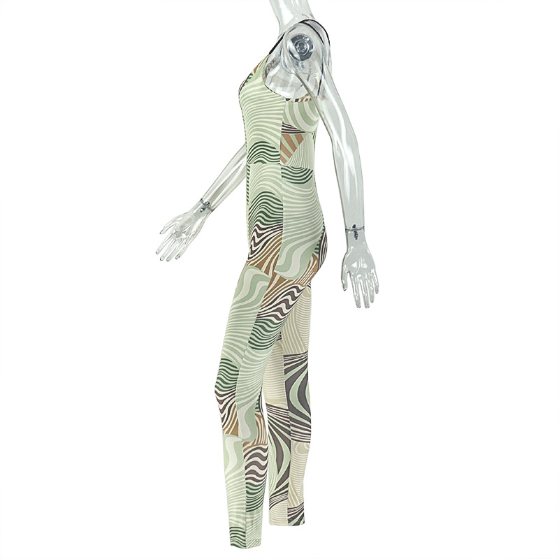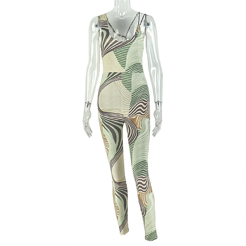 Women Clothing Backless Tight Home Long Conjoined Trousers Printed Sexy Bandeau Jumpsuit All Matching